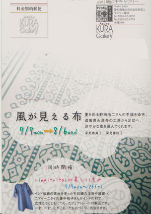 風が見える布 2014.7.7(月)〜8.6(水) 蔵の中ギャラリー ホームページ http://kuranonakagallery.com/ facebook https://ja-jp.facebook.com/kuranonaka