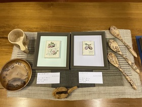 ウッドバーニングを施した木製食器・自ら拾いなめした