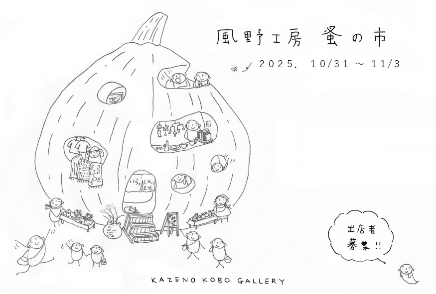 今年の3月にも開催・盛況となりました、風野工房での蚤の市をこの秋も開催いたします。 出品内容は、作品でも、リサイクル品でも、食品でもなんでも自由。楽しい仲間が集まって、 その日限りの市を開きます。ぜひ皆さま奮ってご出店・ご来場ください。