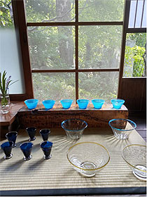 山下達巳さんの眼にも涼やかな使い心地の良い ガラス作品を展示販売いたします。 夏の疲れを癒しに風野工房へお立ち寄りください。