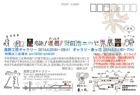 風野工房ギャラリー 2014.4.25(金)〜29(火) ギャラリー象ヶ花 2014.5.3(土祝)〜7(水)