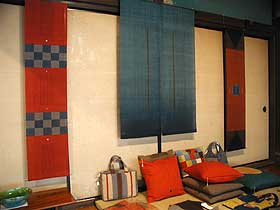 生命、エネルギー、母なる大地の赤、力強く独自の赤の色使いに拘った、タペストリー、のれんデバイダー、センターランナー、袋物や小物など風野工房のオリジナル作品を展示いたします本年もどうぞよろしくお願いいたします